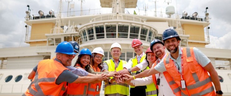 Uma comitiva integrada pelo governador do Maranhão, Carlos Brandão, executivos globais da TGS e autoridades vinculadas ao setor energético, esteve no porto para a recepção oficial do navio, considerado a maior embarcação sísmica do mundo.